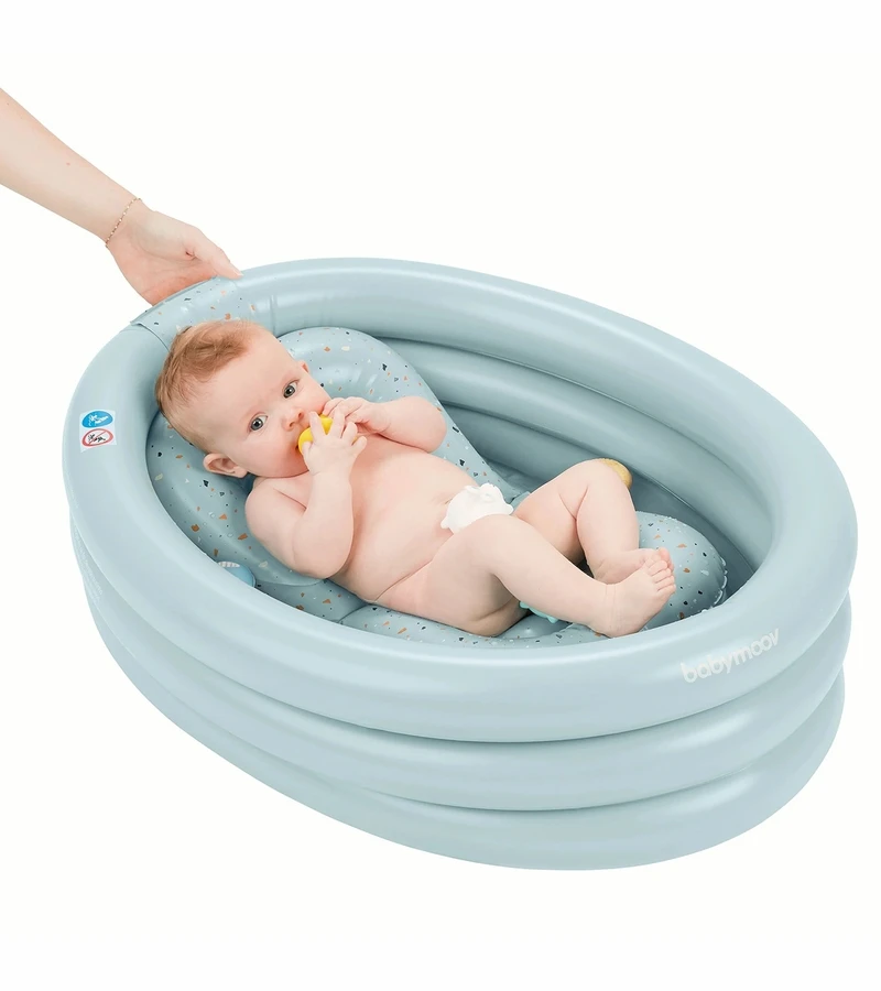 Inflatable & lightweight, The Babymoov inflatable bathtub saves space at home and is easy to pack in the carry bag it comes with!
