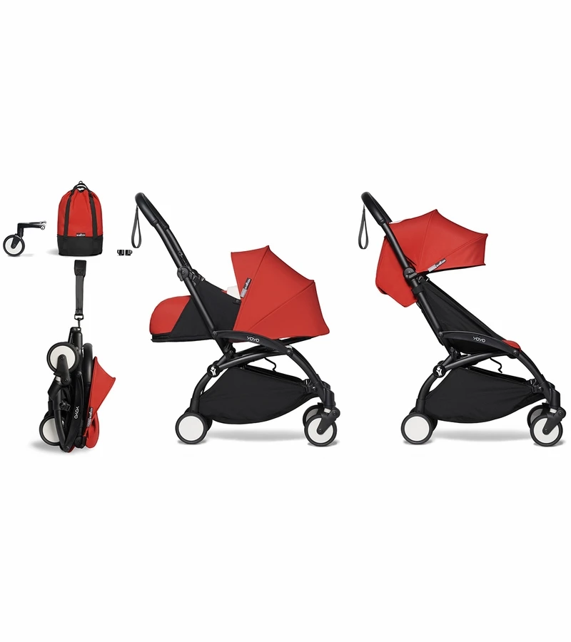 Babyzen YOYO2 Ultra Compact Complete 0+/6+ Stroller & Rolling Bag Bundle – Black/Red