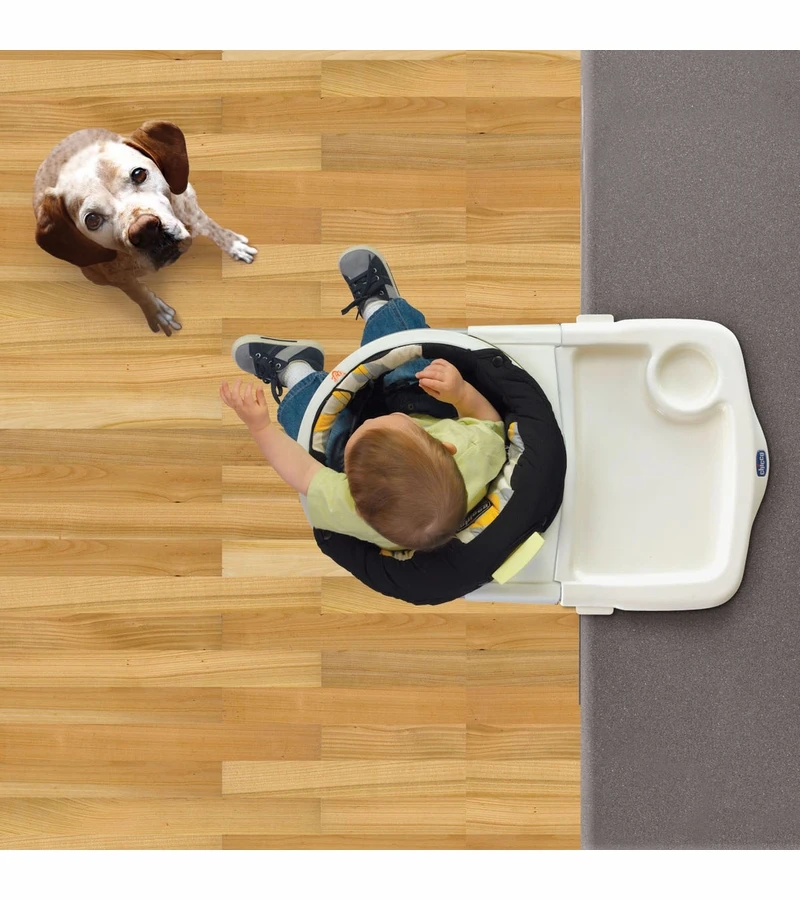 Designed in Italy, Chicco’s 360-degree rotating hook-on chair has an innovative seat that locks in 6 positions for happy and interactive mealtimes.