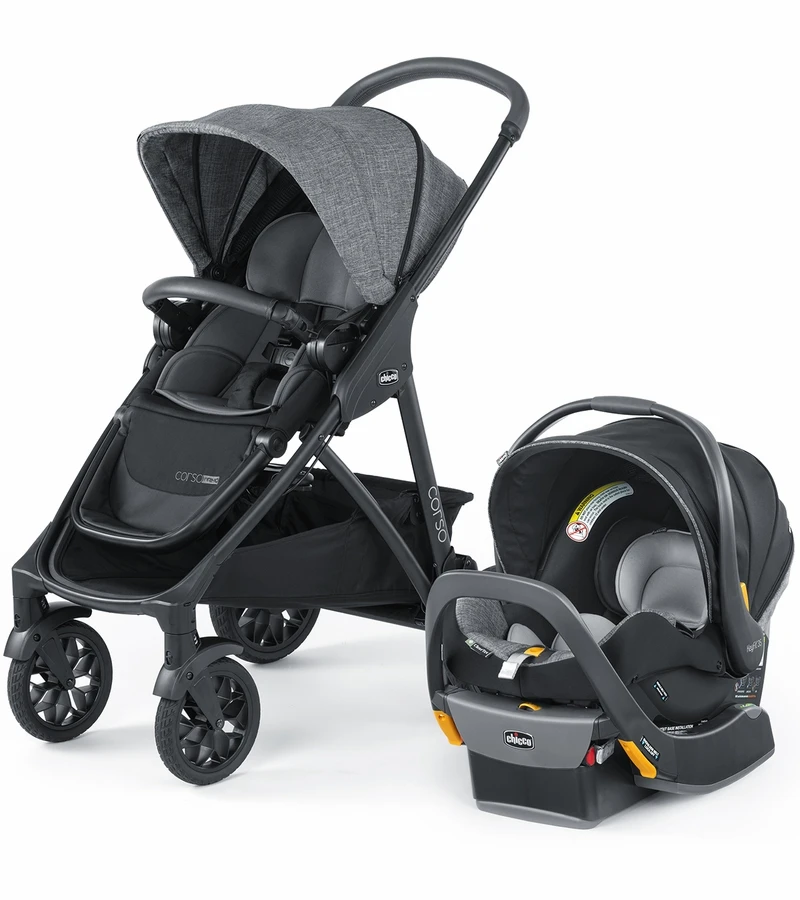 Designed with no chemicals added ClearTex® fabrics and an organic infant seat insert, the Corso® Primo ClearTex® Modular Travel System is the gentle choice for your baby, while premium leatherette details add comfort and style. A modular multi-position reclining seat, adjustable footrest and zip-extend canopy with mesh panel keep your growing toddler content and comfortable amid the hustle of day-to-day travels and an extra-large storage basket with expandable bottle pockets add luxurious style and convenience.
