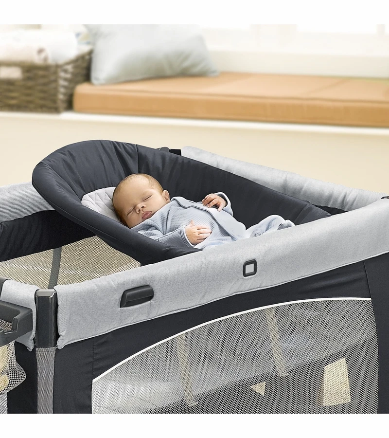 The Lullaby® Baby follows baby’s development and provides a variety of sleeping and relaxing configurations: the smallest babies will be able to snuggle in the cozy infant napper for the first months of life before transferring to the convenient raised bassinet, and eventually transitioning to the spacious playard.