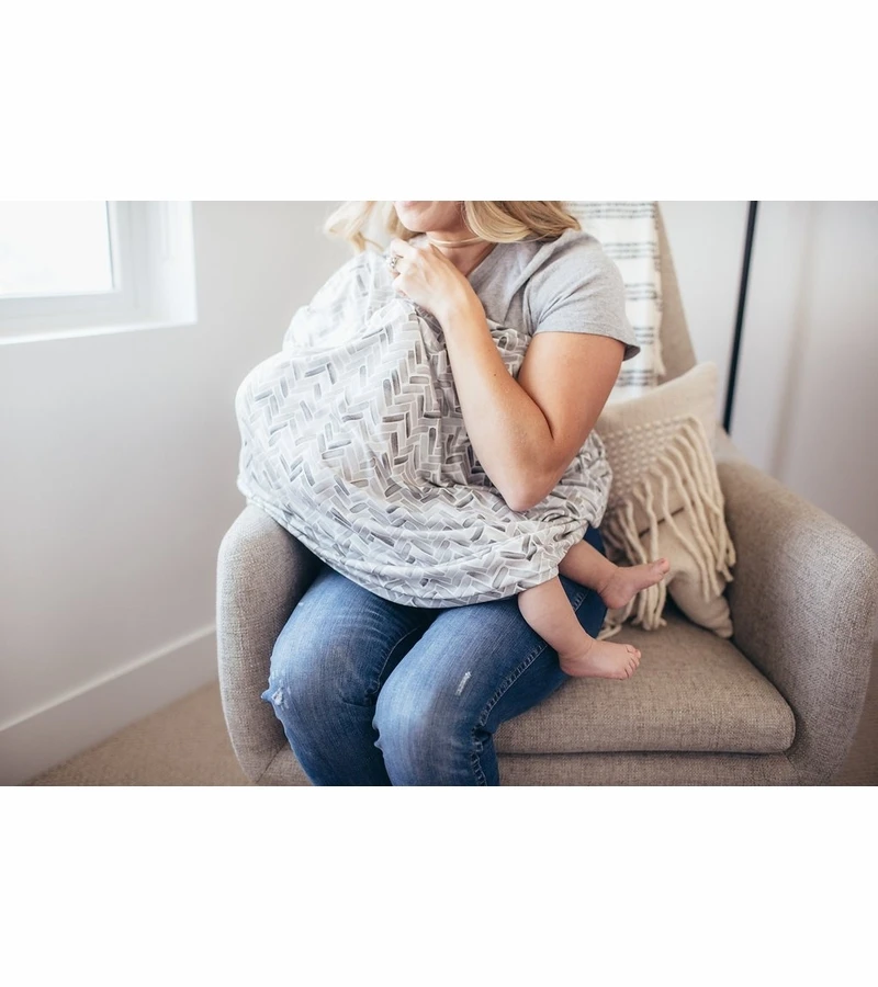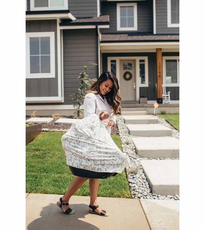 Copper Pearl multi-use 5-in-1 cover can be used as a car seat cover, a nursing cover, a shopping cart cover, a high chair cover, and an infinity scarf. This versatile cover is made of a high quality, stretchy, and durable fabric. The unisex, modern, and trendy fabric offers your baby protection from the elements such as wind, rain, snow, and bright light. It is quick and easy to put on and take off but snug enough that your little one can’t kick it off while nursing. The cover is warm enough for the cold winter months and lightweight enough for the hot summer months. As a nursing cover, it provides full and adequate coverage for worry-free nursing. You no longer have to be nervous about nursing in public or wherever you are. The stretchy fabric also allows you to easily access to your newborn while breastfeeding, to ensure a good latch or for any other adjustments. While you are shopping, this cover protects your little one from germ infested shopping carts, providing a great alternative to using antibacterial wipes every time you go to the store. One size fits almost all models of car seats, shopping carts, and nursing mothers. Compact when folded, the cover conveniently takes up little storage space in your diaper bag or purse. This nursing cover / car seat cover makes a perfect Christmas present or baby shower gift for new moms.