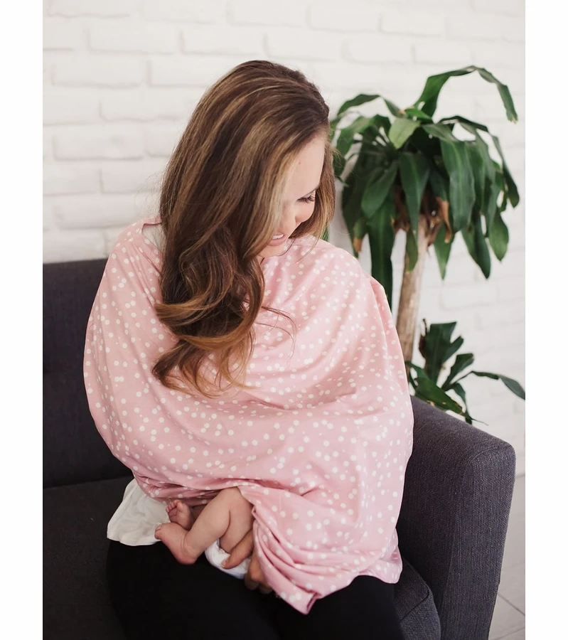 Copper Pearl multi-use 5-in-1 cover can be used as a car seat cover, a nursing cover, a shopping cart cover, a high chair cover, and an infinity scarf. This versatile cover is made of a high quality, stretchy, and durable fabric. The unisex, modern, and trendy fabric offers your baby protection from the elements such as wind, rain, snow, and bright light. It is quick and easy to put on and take off but snug enough that your little one can’t kick it off while nursing. The cover is warm enough for the cold winter months and lightweight enough for the hot summer months. As a nursing cover, it provides full and adequate coverage for worry-free nursing. You no longer have to be nervous about nursing in public or wherever you are. The stretchy fabric also allows you to easily access to your newborn while breastfeeding, to ensure a good latch or for any other adjustments. While you are shopping, this cover protects your little one from germ infested shopping carts, providing a great alternative to using antibacterial wipes every time you go to the store. One size fits almost all models of car seats, shopping carts, and nursing mothers. Compact when folded, the cover conveniently takes up little storage space in your diaper bag or purse. This nursing cover / car seat cover makes a perfect Christmas present or baby shower gift for new moms.