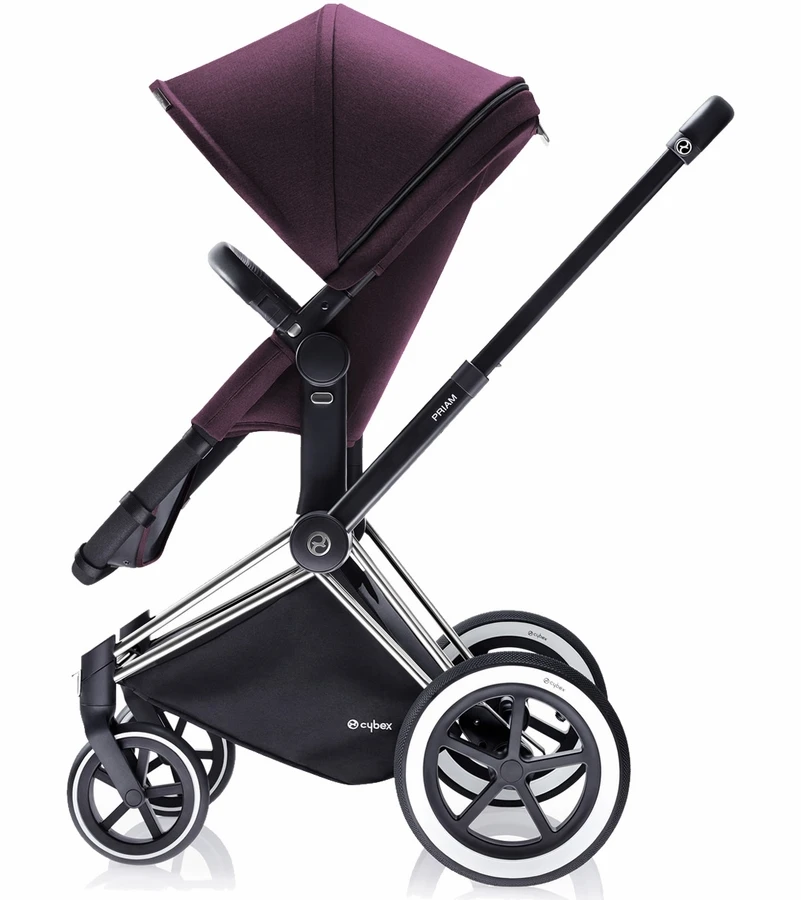 The CYBEX Priam is inspired by the ingenious simplicity, functionality and beauty of the designs by Ray and Charles Eames. The PRIAM 2-in1 Light Seat easily converts from a bassinet to a stroller using the same frame for two different fabric sets (both included) and can be used from birth up to 55 lbs. When used as a pram it is a full size Carry Cot with a covered mattress on top of a firm bottom, with a removable cover over the foot end.