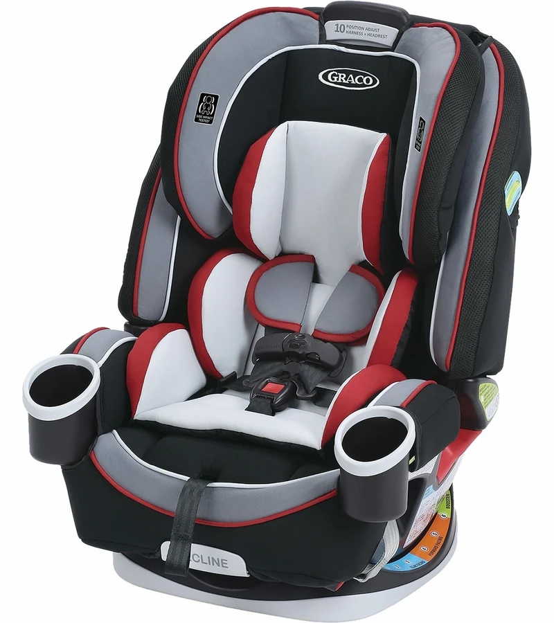 Graco 4Ever All-in-1 Car Seat gives you 10 years with one car seat. It’s comfortable for your child and convenient for you as it transitions from rear-facing infant car seat (4-40 lbs) to forward-facing 5-point harness seat (20-65 lbs) to high-back belt-positioning booster (30-100 lbs.) to backless belt-positioning booster (40-120 lbs). For a proper fit, the Simply Safe Adjust Harness System and 10-position headrest lets you adjust the harness and headrest together, with no rethreading. The 6-position recline keeps your child comfortable, while the InRight LATCH system with one-second attachment makes installation easy. It’s the only seat that truly goes from baby to booster!