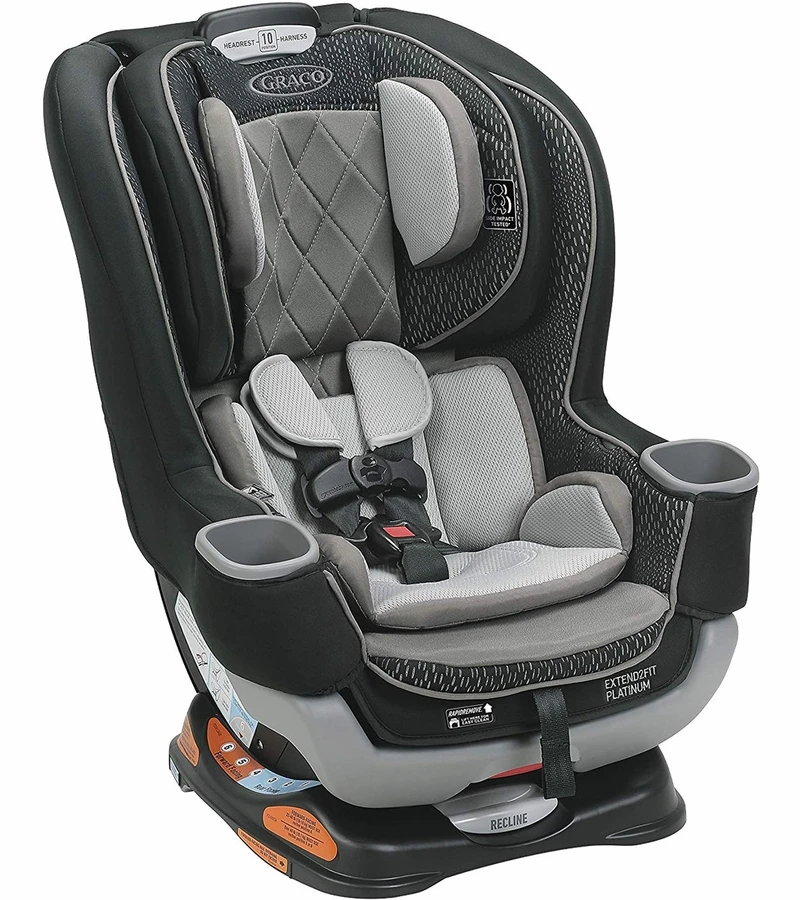 With 5 of extra legroom, the Graco® Extend2Fit® Platinum Convertible car seat featuring EZ Tight LATCH for an secure and simple installation in 3 easy steps. Extend2Fit® Platinum lets your child safely ride rear-facing longer. Extend2Fit® Platinum features a 4-position extension panel that provides room for growing legs. It can be used rear-facing from 4-50 lb and forward-facing from 22-65 lb. The machine washable RapidRemove cover can be removed without uninstalling the seat, and it also features Simply Safe Adjust which allows you to adjust the height of the harness and headrest as your child grows.