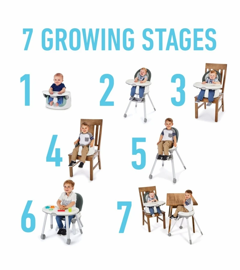 - Stage 7: Seats Two Kids at Once: Multiple options to seat two kids. For mealtime, seat two kids with the youth stool and booster. For playtime, use the floor seat and table & chair!