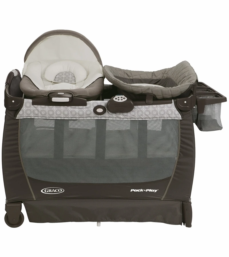 Graco’s Pack ‘n Play? Playard Snuggle Suite? helps keep you connected to baby anywhere at home. The cozy, portable infant seat lets baby stay close to your side and then doubles as a portable bouncer – you can use built-in vibration either way! The extended-use changing station (including a built-in organizer for baby?s essentials) gives you a convenient changing spot longer, for baby up to 30 lbs. Other terrific features like an infant bassinet, comforting songs and sounds, look light for nighttime check-ins, full-sized play space and more make this a smart choice for soothing and play from birth to toddlerhood.