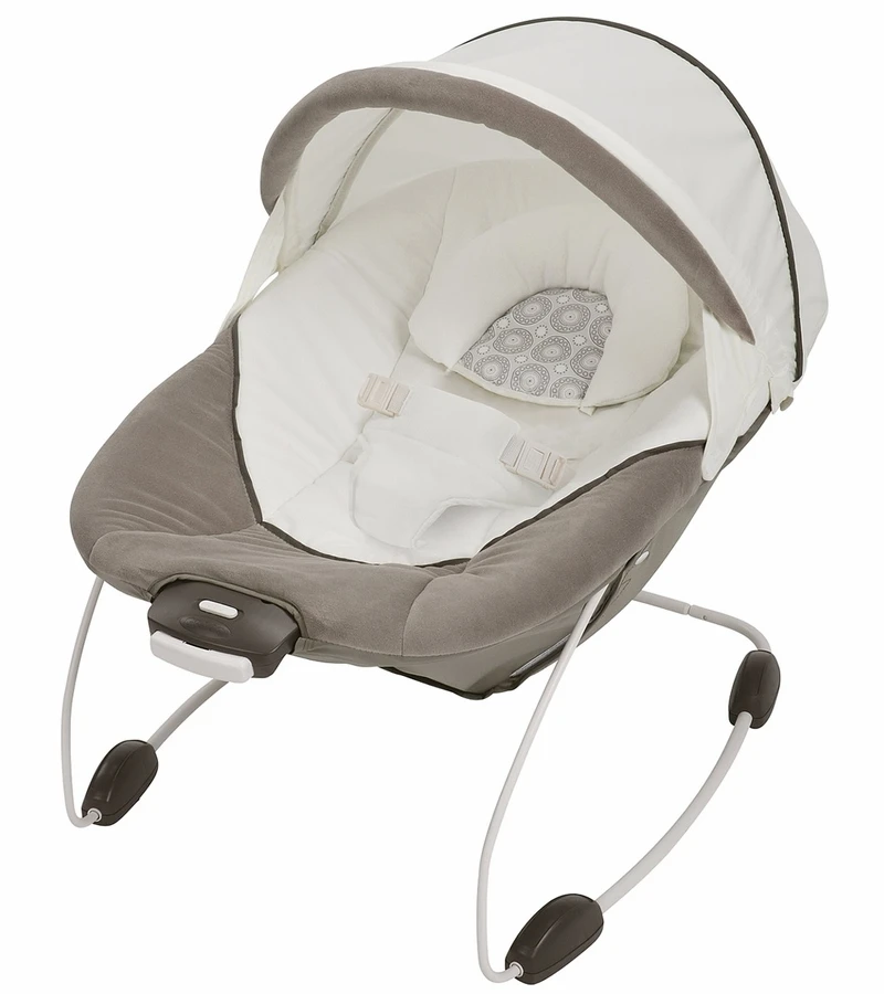 - Gentle 2-speed vibration soothes baby in infant seat and bouncer