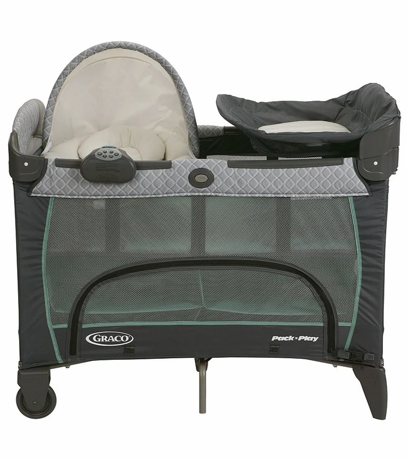 Graco? Pack ‘n Play? with Newborn Napper? DLX grows with your child as you place your newborn in the cozy napper station, then as your infant rests in the comfortable full-size bassinet, to your playful toddler safe in the full-size playard. The Pack ‘n Play? with Newborn Napper? DLX offers space-saving convenience with its stylish built-in storage shelves that allow you to keep blankets, diapers, pajamas and other necessities close by.