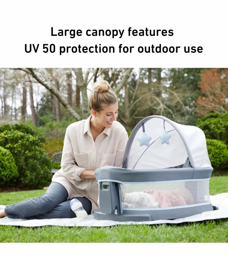 - Portable Travel Dome bassinet can be used on or off the playard, so you can keep baby by your side wherever you go