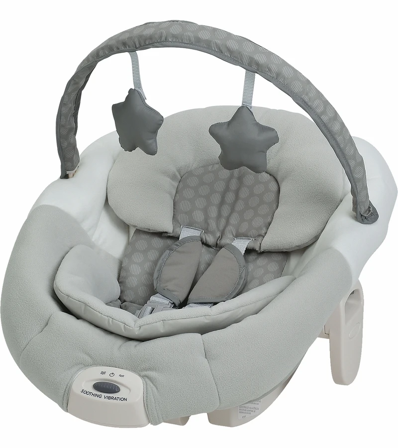 - Mode 2: Removable rocker with soothing two-speed vibration and entertaining toybar for use anywhere at home
