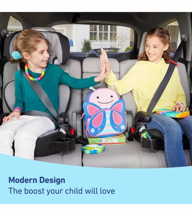 - 2-in-1 seat easily converts from a highback booster to backless booster for years of use
