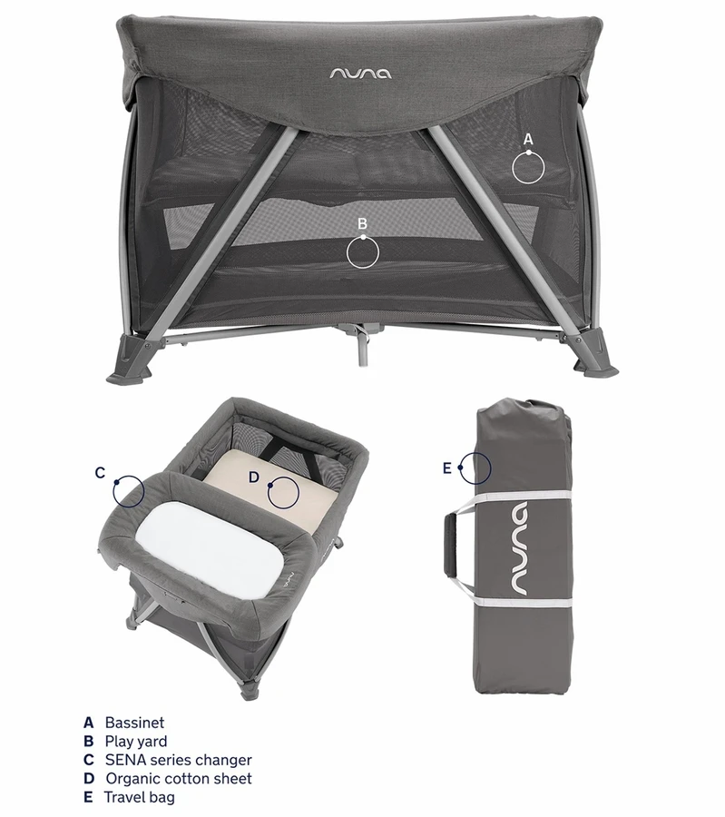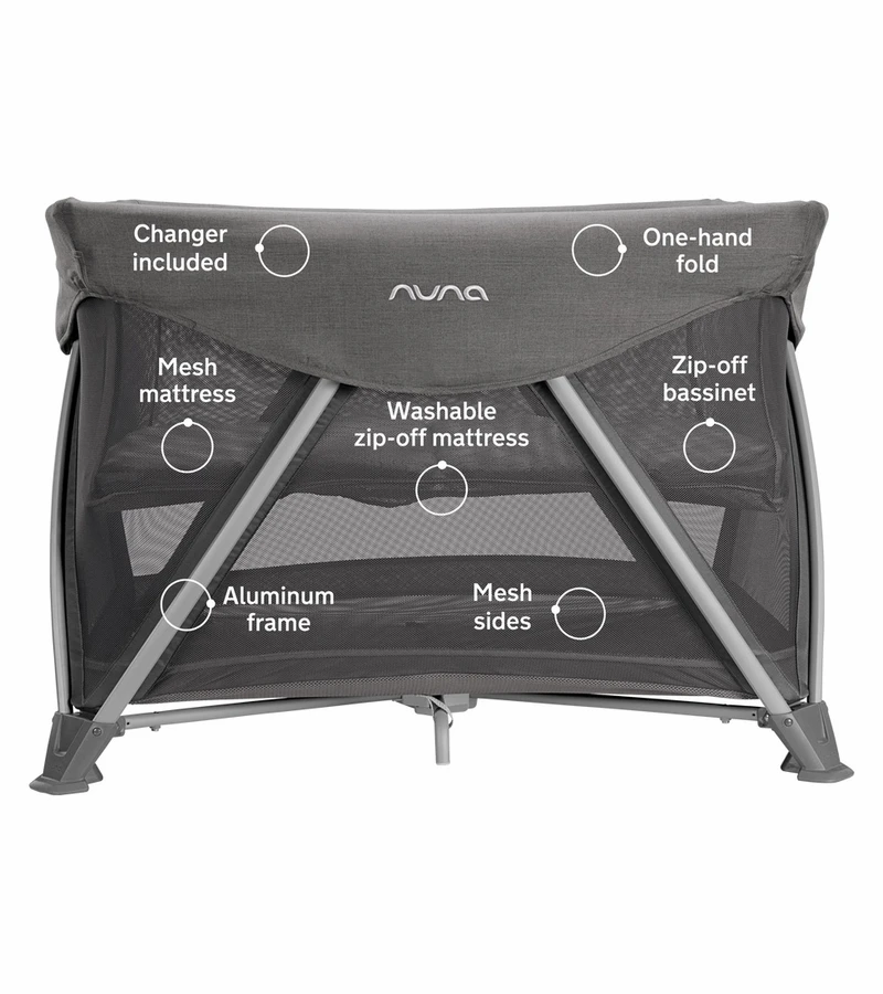 Nuna SENA Aire Playard With Zip-Off Bassinet + Changer (One Box) – Granite