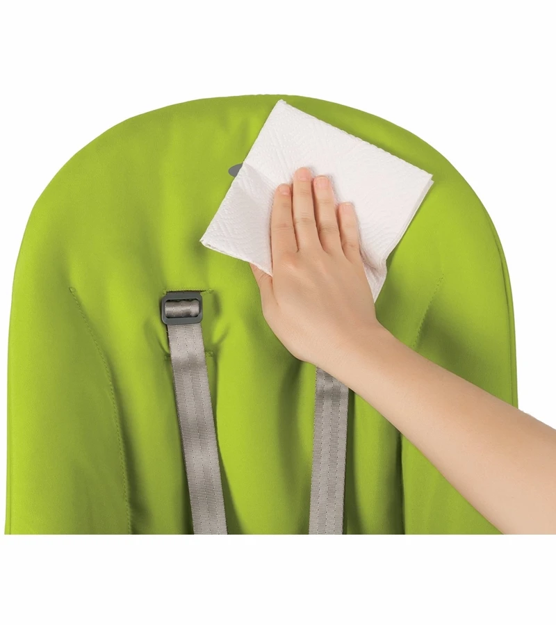 Mealtime can be messy, so the Chair and cushions are easily wipe able for quick cleanup of crumbs and other sticky situations. The removable tray cover is dishwasher safe and the stain-resistant cushion is easily removable and machine washable for those extra-big messes.