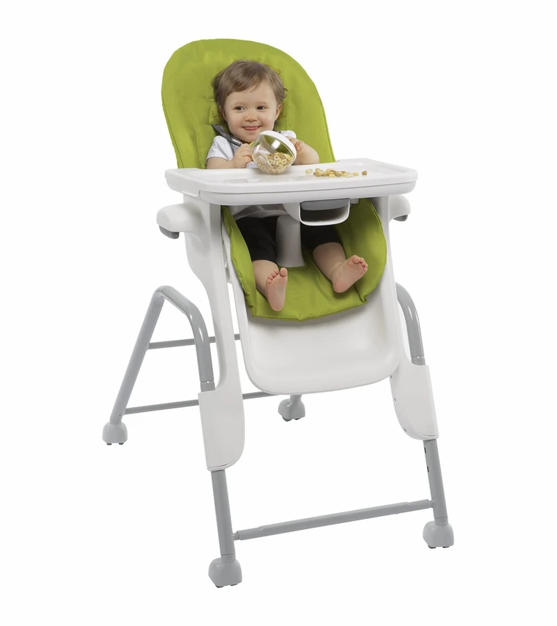 Mealtime can be messy, so the Chair and cushions are easily wipe able for quick cleanup of crumbs and other sticky situations. The removable tray cover is dishwasher safe and the stain-resistant cushion is easily removable and machine washable for those extra-big messes.