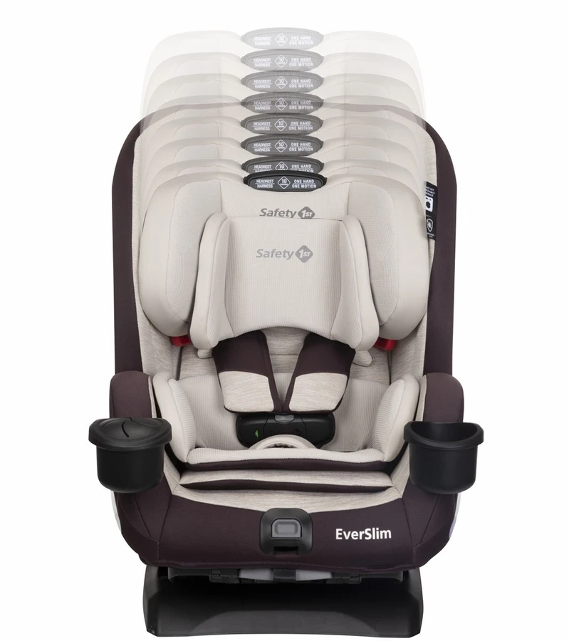The Safety 1st EverSlim All-in-One Convertible Car Seat is built to grow with your child while keeping them safe and comfortable on the road. With 4 modes of use—rear- or front-facing, belt-positioning booster, or backless booster—the Safety 1st EverSlim is ready to take your baby home from the hospital or take your big kid to soccer practice. The red-to-green indicator on the SecureTech™ chest clip visually shows parents if the chest clip is buckled or not. The seat’s slim design allows for fitting 3 across the back seat in most vehicles without sacrificing safety or comfort. With a 5-position adjustable base, an easy-to-convert backless booster, and machine washable and dryable fabric, it’s the only car seat your child will need, from birth through age 10.