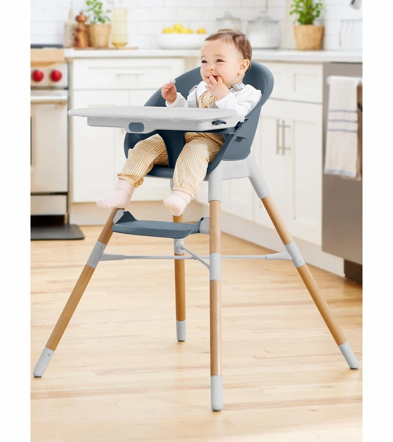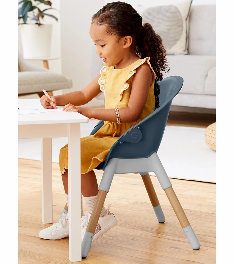 From baby to big kid, our modern 4-in-1 high chair adapts to your child’s stage and age for years of use. Sleek and space-saving, the innovative design can be used four ways: baby high chair, dining booster, tableside booster and finally a big kid chair. Smooth wipe-clean surfaces, a detachable tray and more user-friendly features make this convertible high chair a mealtime must-have with multiple options.