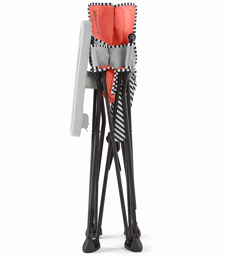 The Summer? Pop ?n Dine? SE Highchair is perfect for indoor & outdoor dining. Featuring an innovative pop and fold design that sets up in seconds, a compact fold, and included carry bag, the Pop ?n Dine? SE Highchair is easy to bring with you on all your adventures. The small footprint makes it easy to bring baby close to the adult table and clean-up is easy with the removable, machine-washable fabric and dishwasher safe tray. The included wet/dry bag is great for utensils, wipes, or even snacks. Plus, it easily removes so you can throw it in your bag to take with you on-the-go.