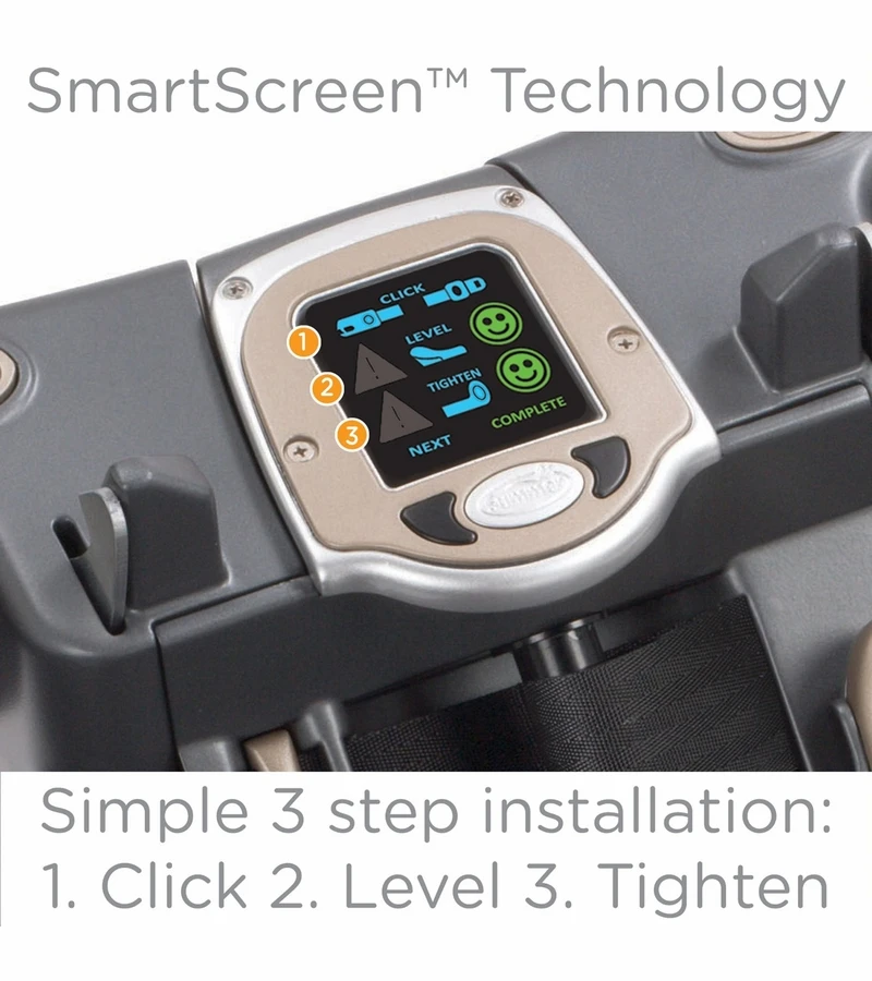 This revolutionary, award-winning technology makes installing and using a car seat easier than ever. With its SmartScreen? Technology guiding you through a simple 3 step installation, innovative belt tightening system, and 1-adjust? harness automatically adjusting to your baby?s growing size, being a new parent has never been so easy!