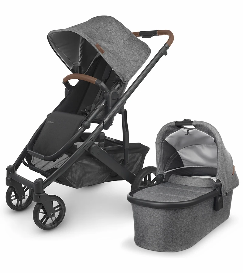 UPPAbaby CRUZ V2 Stroller + Bassinet – Greyson (Charcoal Melange/Carbon/Saddle Leather)