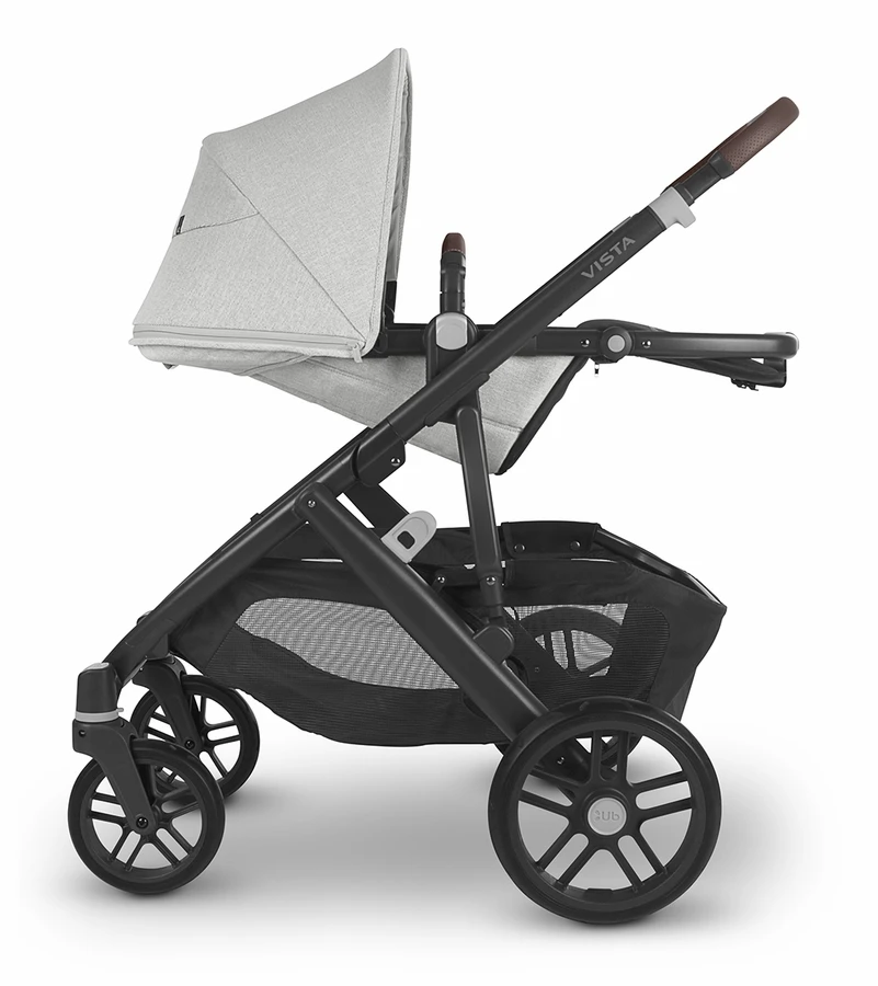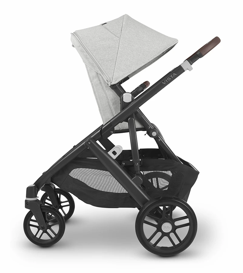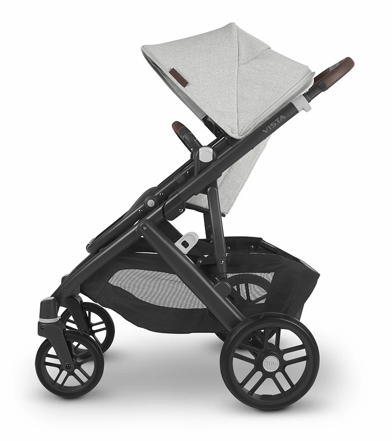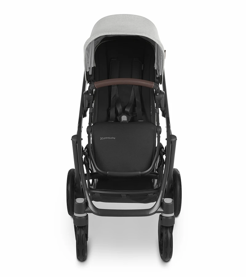 UPPAbaby Vista V2 Single-to-Double Stroller – Anthony (White And Grey Chenille / Carbon / Chestnut Leather)